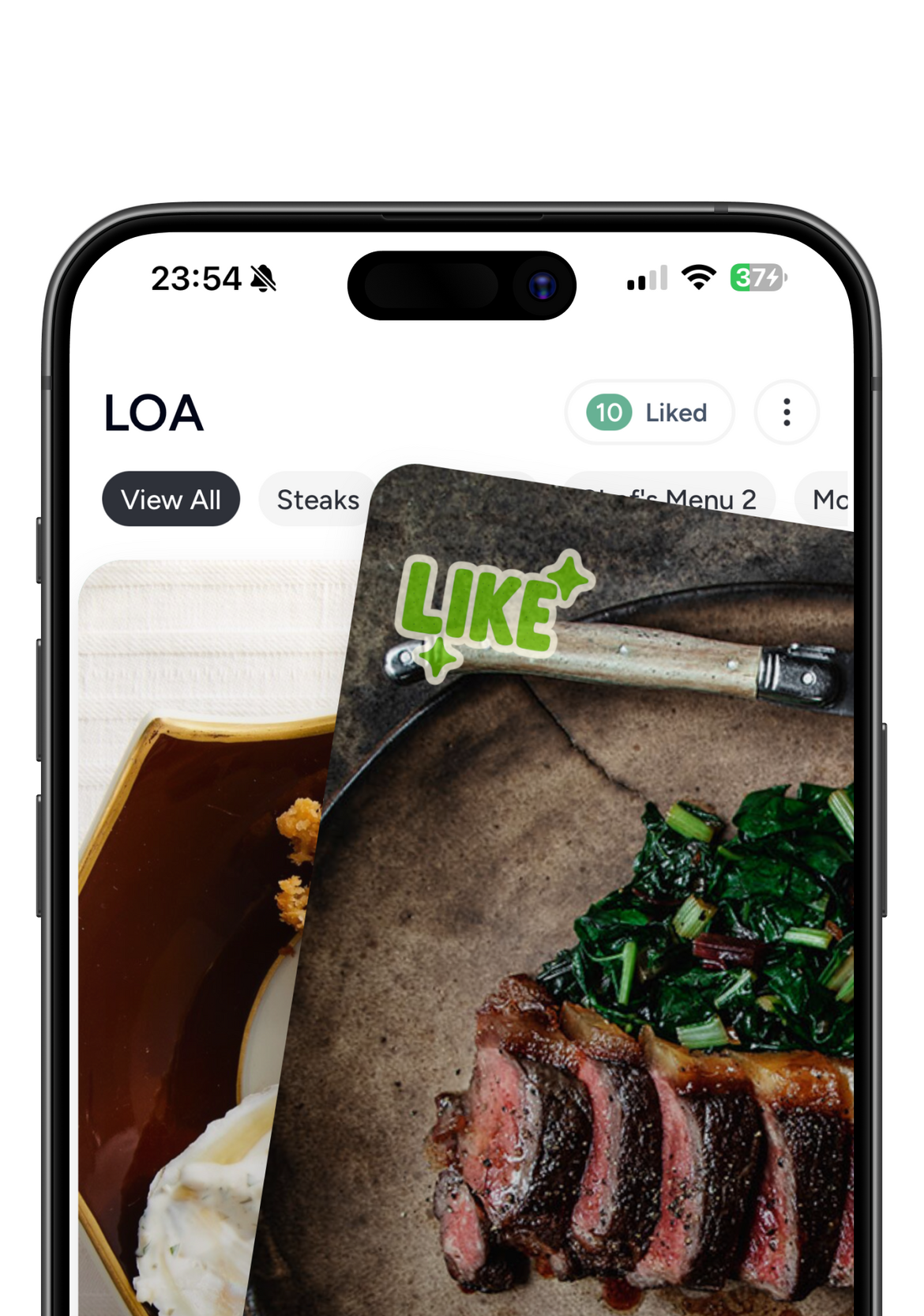 Choosey is an AI-powered dining assistant that transforms boring text based restaurant menus into a swipeable visual experience.