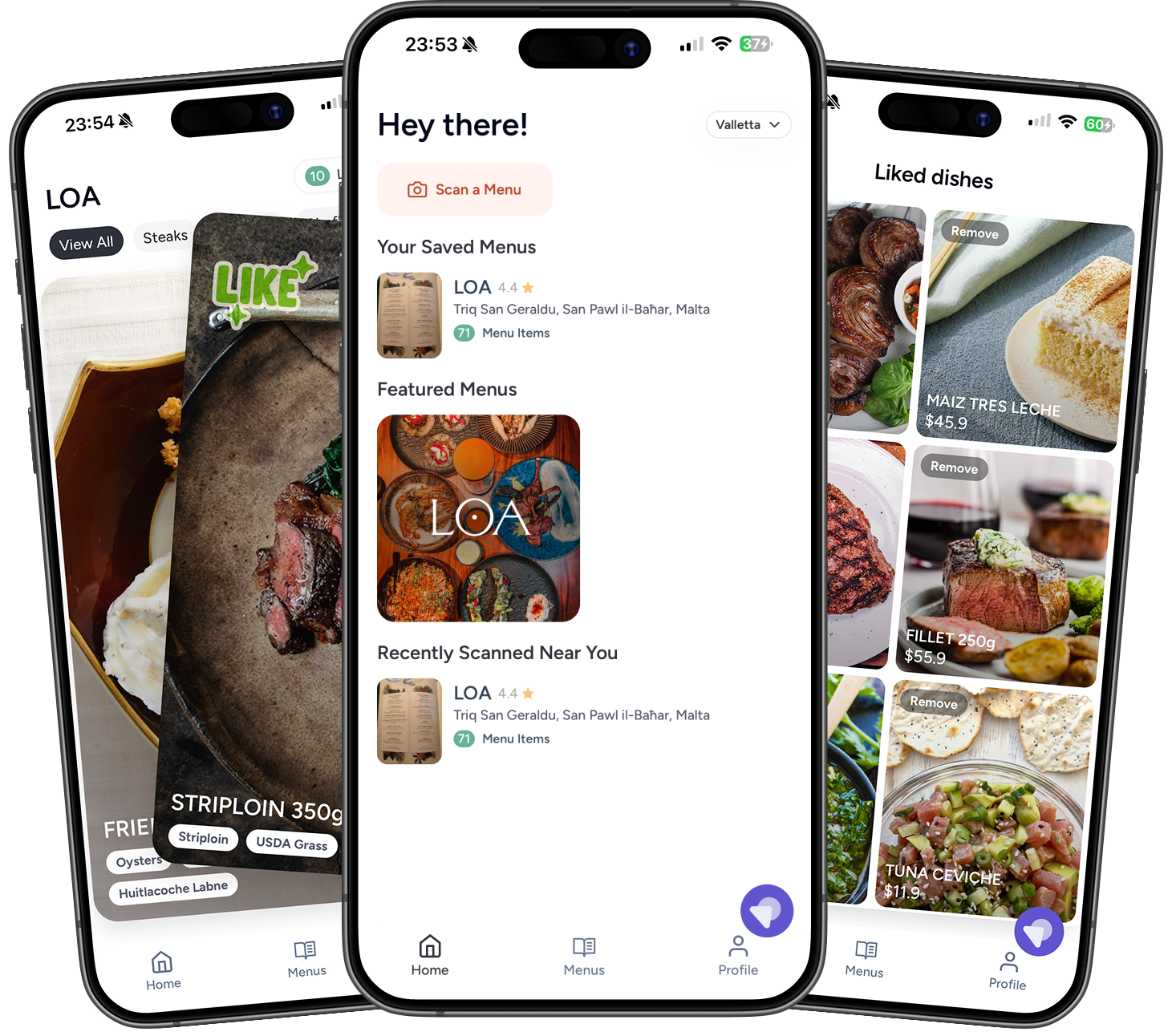 Save your scanned menus, explore verified restaurant menus and scanned menu from others.